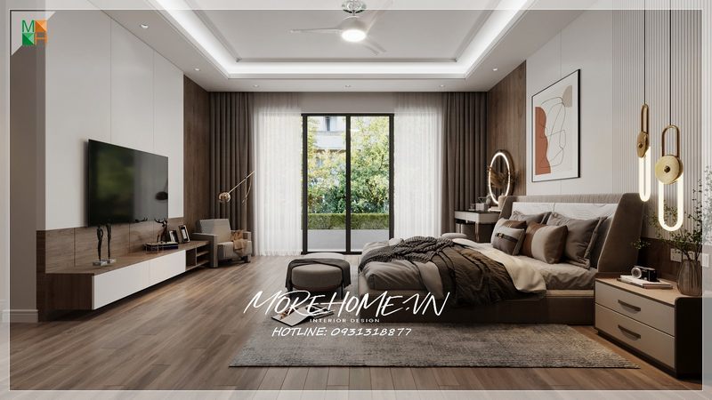 Khoảng không gian đón nhận được ánh sáng và không khí bên ngoài một cách dễ dàng đó là cửa kính có rèm hiện đại sang trọng tạo không gian thoáng đãng mát mẻ.