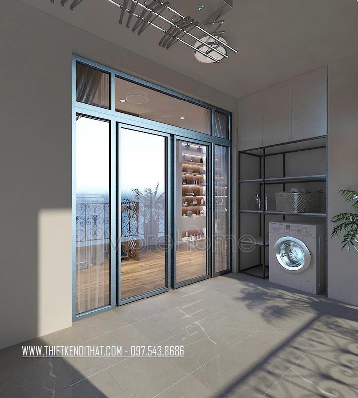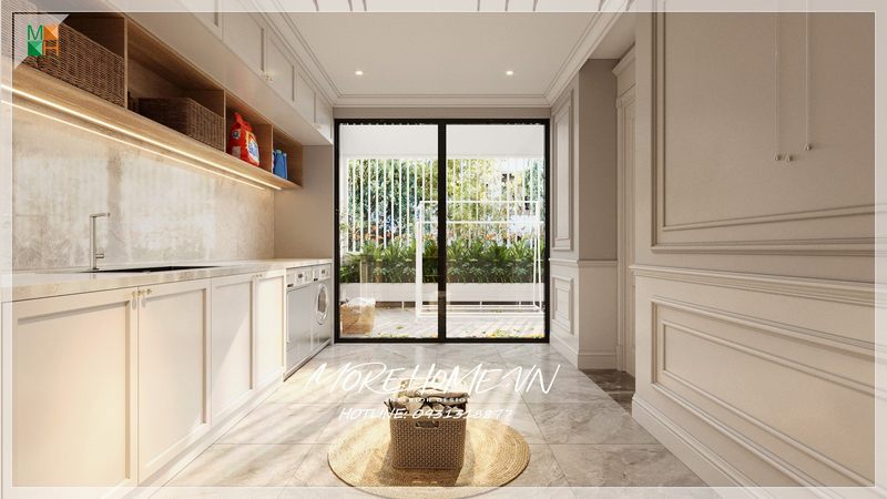 Phòng giặt đồ trang trí đơn giản nhưng đáp ứng được yêu cầu sử dụng cho gia chủ.