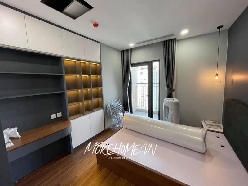 Với không gian diện tích phòng ngủ không được rộng thì việc lựa chọn nội thất vừa là tủ để đồ và có các kệ tủ để sách hay đồ vật trang trí sẽ rất tiện lợi mà lại đem tới căn phòng sự hiện đại gọn gàng.