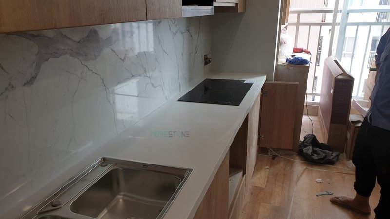 Mẫu đá ốp tường bếp có màu vân mây ấn định sắc nét.