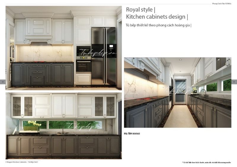 Tư vấn bố trí nội thất phòng bếp với 2 bên tủ phân chia khu nấu và rửa song song tiện lợi và mang yếu tố phong thủy tốt